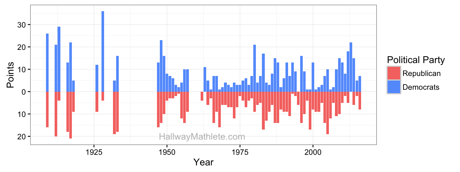 - The graphs were made using ggplot2 and the data was gathered using rvest. (God bless Hadley Wickham)